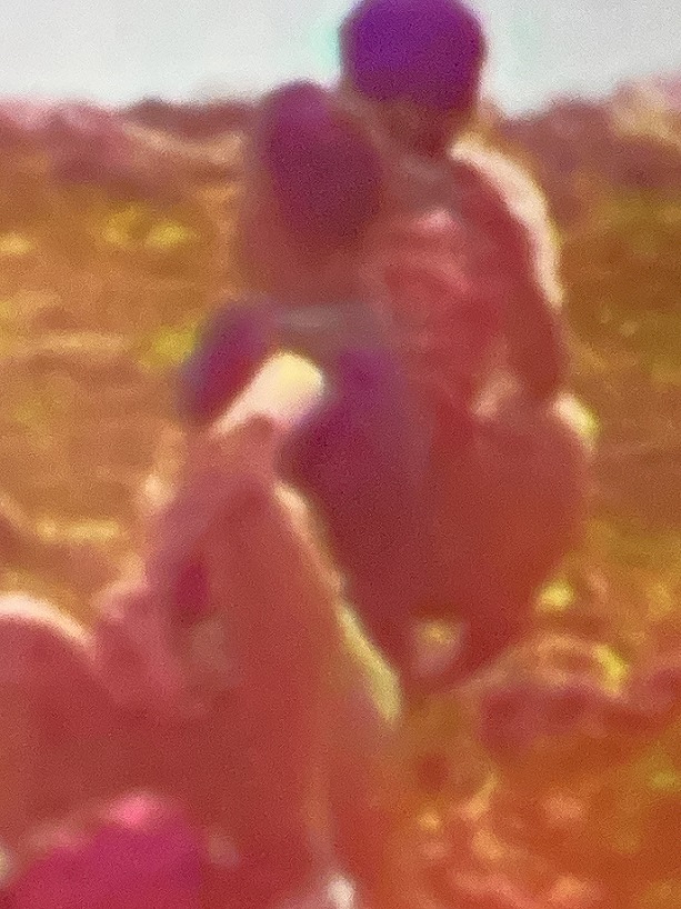 “A total of 7 works can be seen in the exhibition. At the entrance, the public has to change shoes. To the left of the door is a metal shelf with 8 pairs of shoes. 8 pairs cut and tied from carpet. Carpet on carpet. The maximum number of people in the room is thus limited to 8. On the wall to the left, the neon work Untitled (le citron) shines in cool white. Lemon, citron, Manet. Japanese plate. The street shoes on the shelf. Four stones on the floor demand to cross an artificial water surface in a performative act. It is impossible to cross the water from both sides at the same time. They have to communicate and come to an agreement. From this point on, many things happen simultaneously. You are standing on carpet again, carpet on carpet. On the left, bright light, the only and therefore almost glaring light in the entire room. Two works on the wall to the right. About 4 meters apart. The one on the right is a painting. Title: Untitled (Circles/2). Landscape, sunset, oil, paint on canvas. On the left a screen print on aluminum. A couple, two people. Black on aluminum. Title: Untitled (Couples/2). If you turn around, you stand in front of the work Untitled (KRFZ). What you see is a cable laid across a socket. The socket is unreachably high up, the cable is not plugged in. The cable hangs on the last balanced centimeter of the socket, hanging down to the floor. Three works remain. Two videos, one photograph. Behind the red curtain, Untitled (pieces) takes up an entire room. The 16-minute work gives the entire exhibition a background noise. It is the beginning and the end. Red is the dominant color. Strobo. Two people in a landscape. Red is also the color of the windows. Beginning and end. Two remain. If you move back towards the water, you can see the work Untitled (ile de coeur) on the left. A 6 minute long video work. You can see a cropped fox in a meadow. Green strobe, green noise. The bright light continues to shine from a small room on the right. A narrow corridor leaves you alone, isolates you from the rest of the exhibition. Everything disappears. The photograph Untitled (part of a sky) shows, as the title suggests, a section of a sky. The shiny frame reflects the room. The non-reflective glass, on the other hand, allows a view without reflecting the surroundings. If you go back five steps, you find yourself in the middle of the exhibition. There is the sky on the left, the cable above the socket, the red noise, two people, the sun, an animal and behind you the right angle on the wall – the L that can also be lemon.”